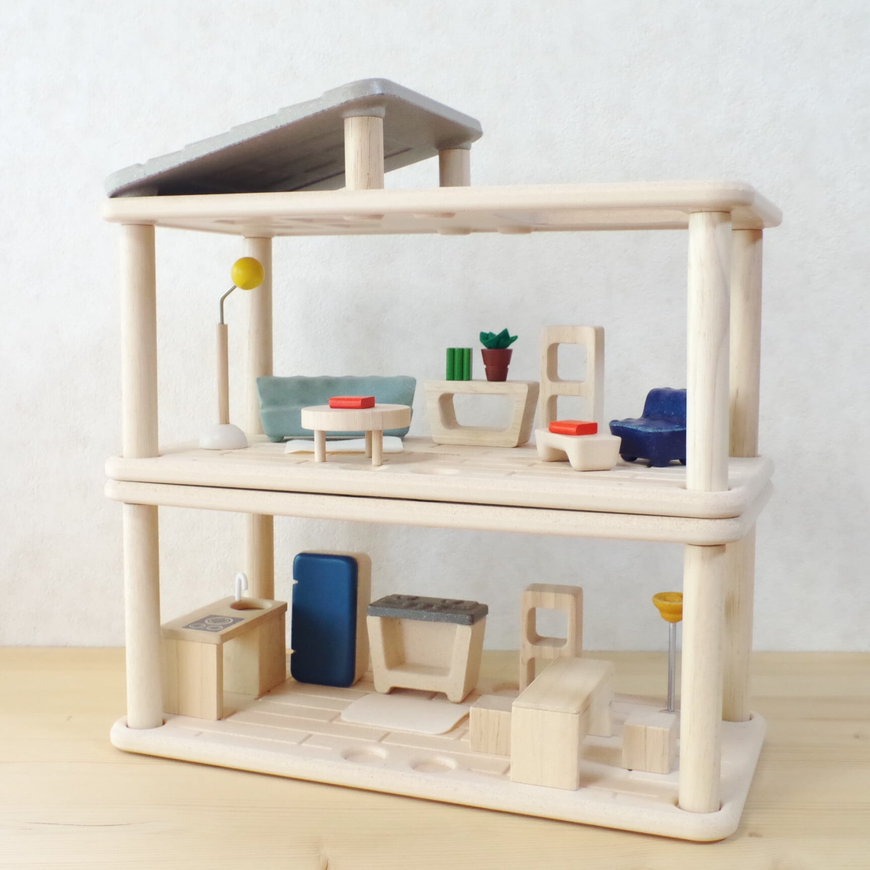 単品でも十分に遊べるコンパクトなドールハウス。他のプランスペースシリーズと重ねたり、並べたりすると、遊びが世界がひろがるユニークなドールハウスです。