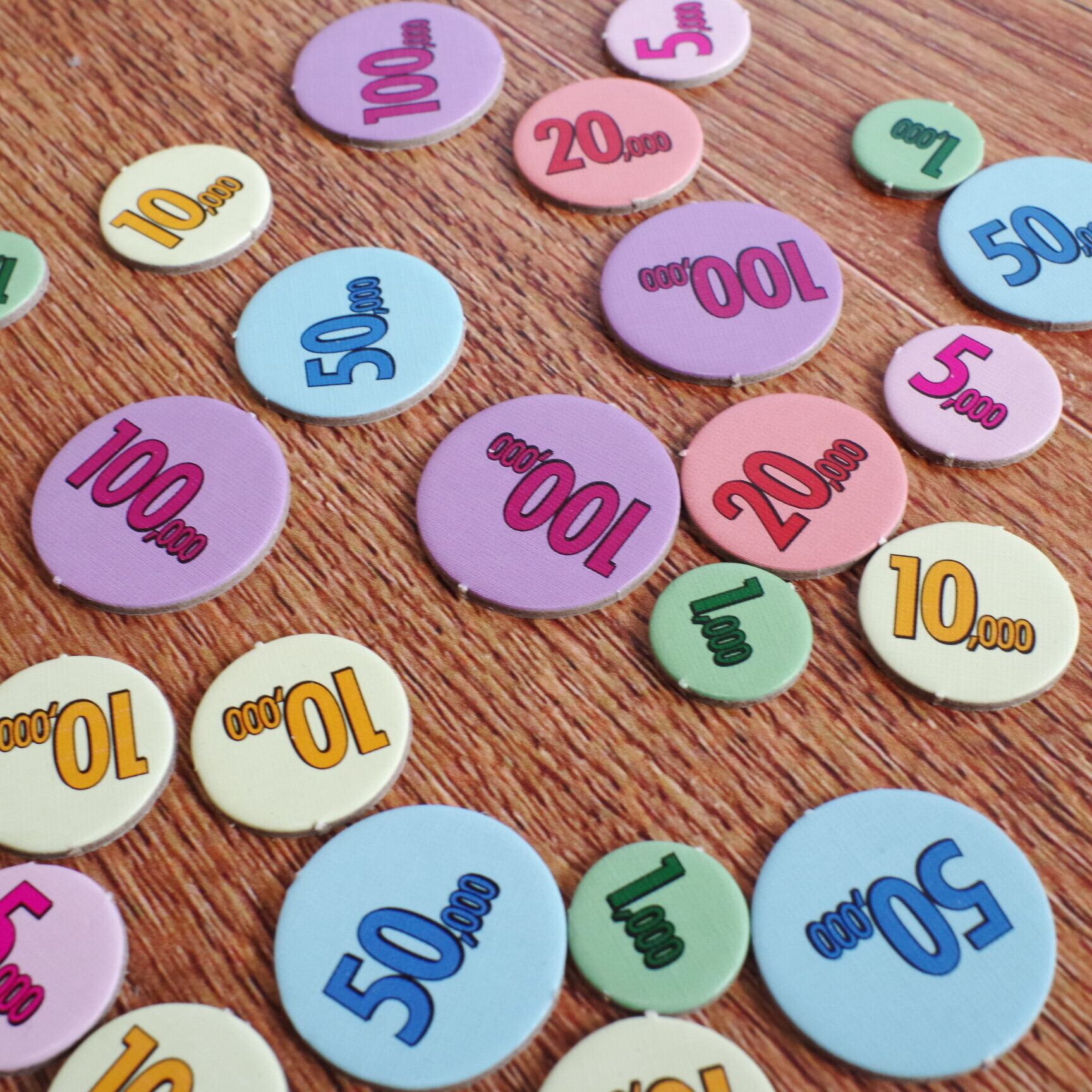 オークションを終えた競売人の左隣のプレイヤーが次の競売人となります。こうして順繰りに競売人を担当していきます。オークションにおいて、値付けは$1,000単位で行います。プレイヤーは、所持金を超える値段を付けてはいけません。