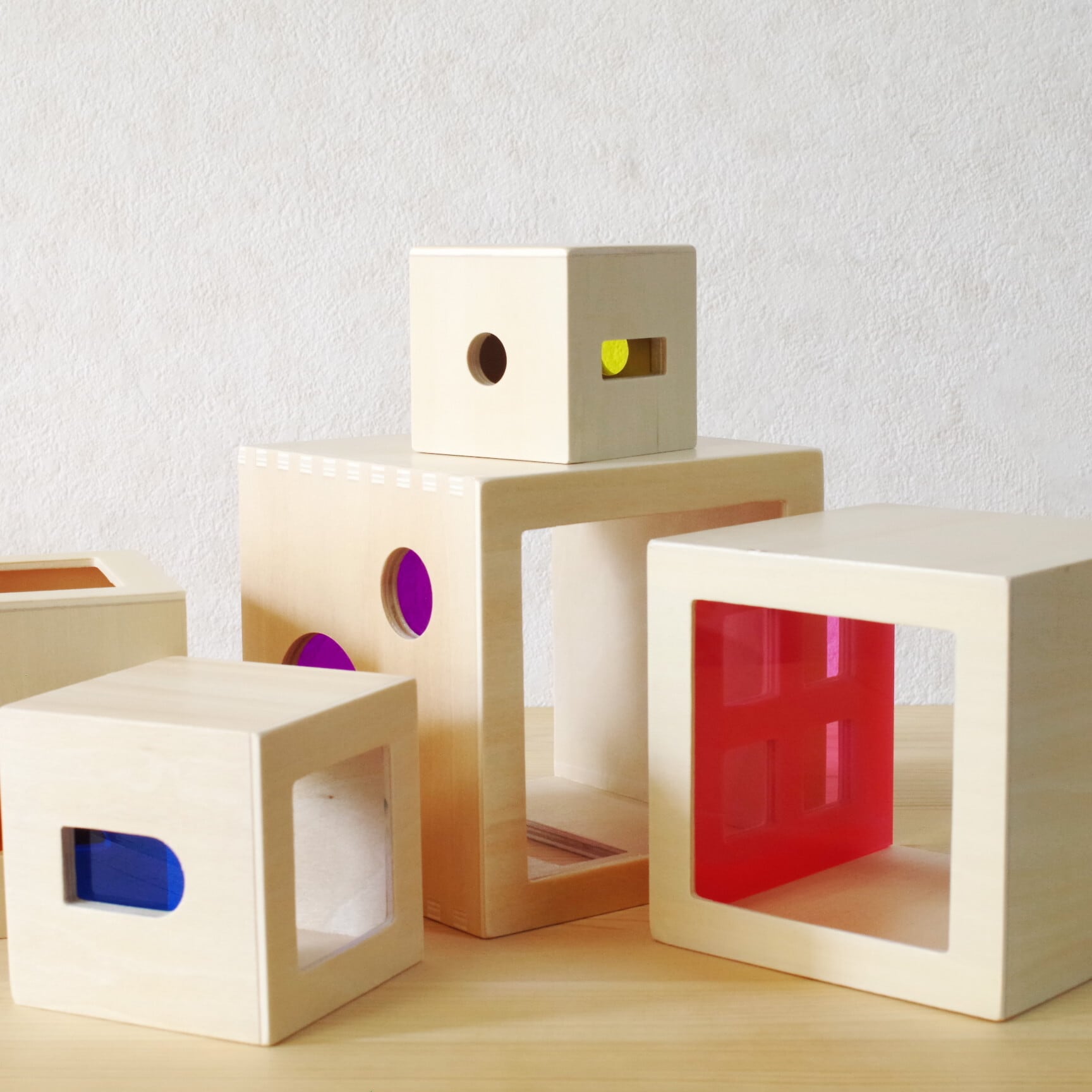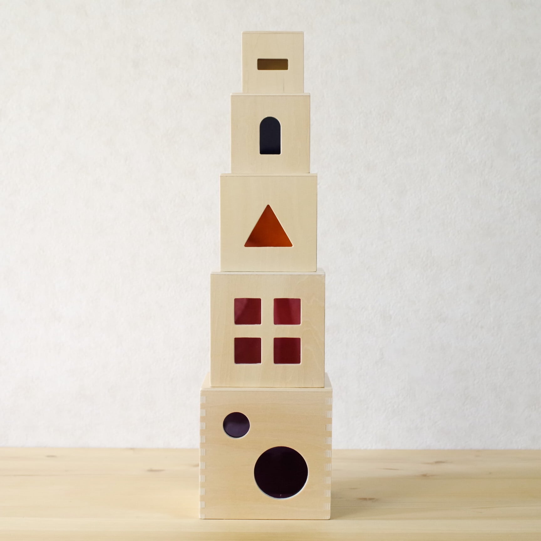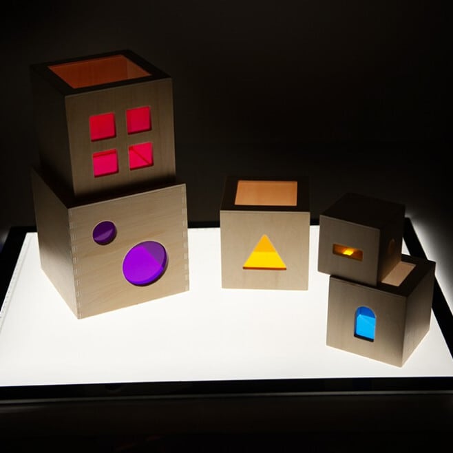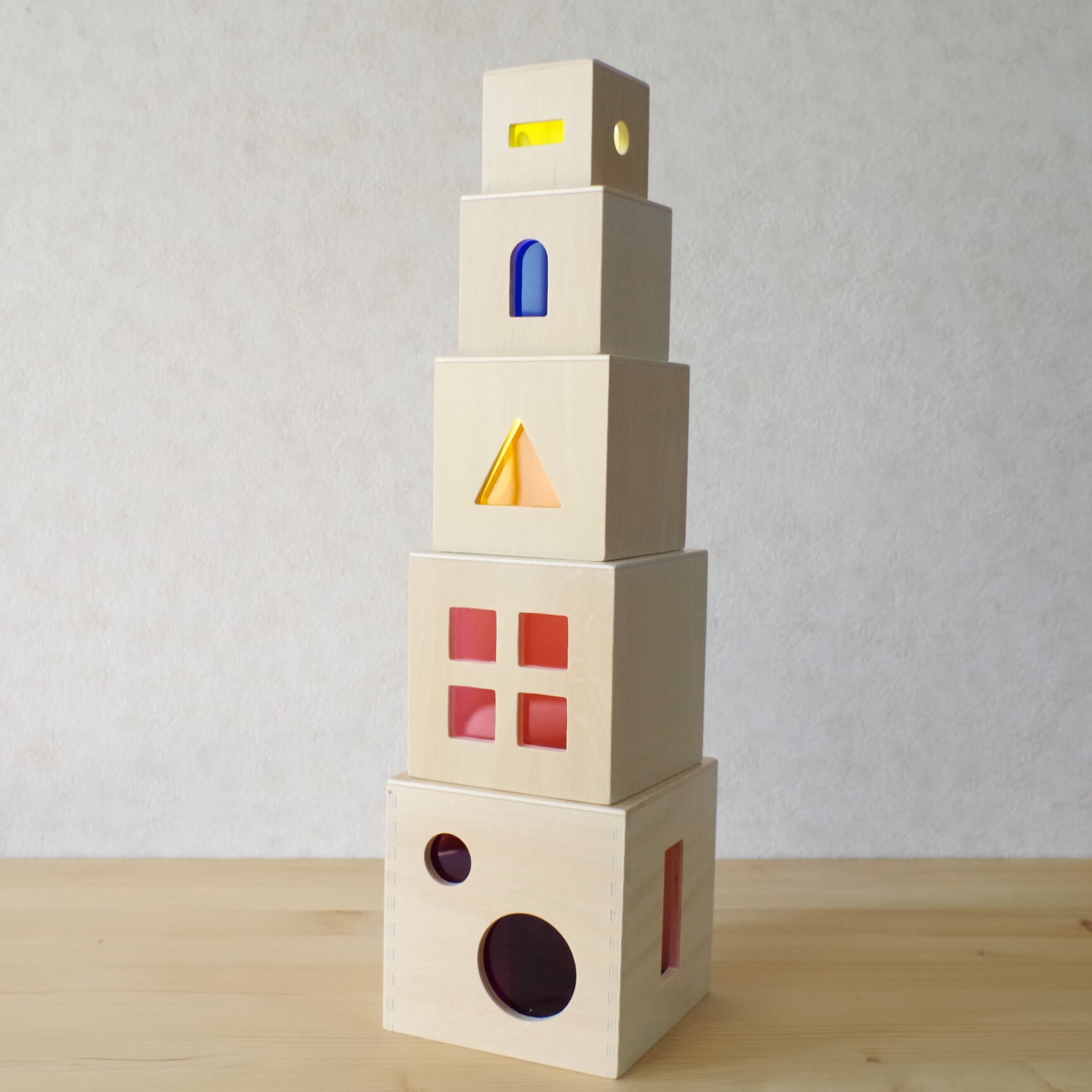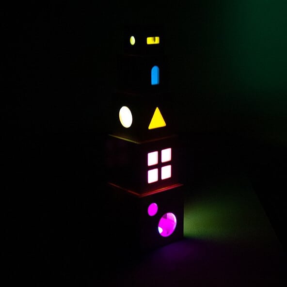 光を通すカラフルなアクリルが施された、アンドリュートイズ社の美しいスタックボックス。