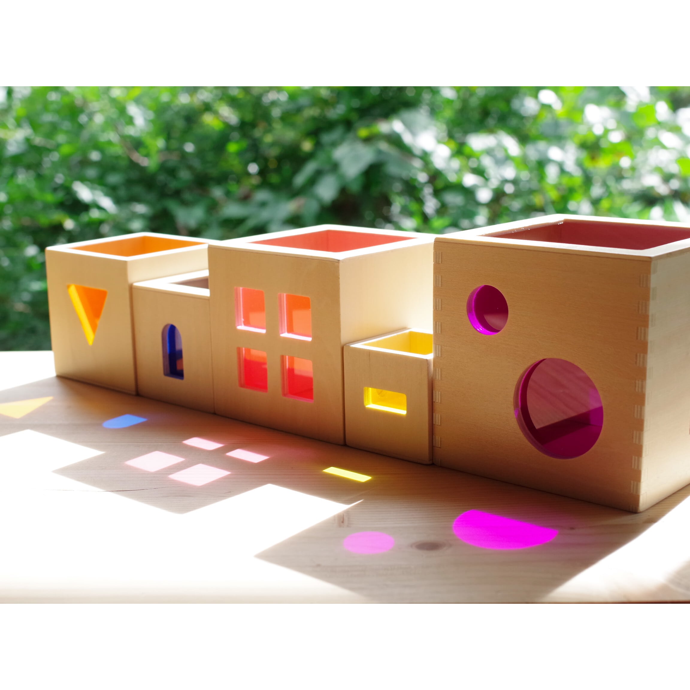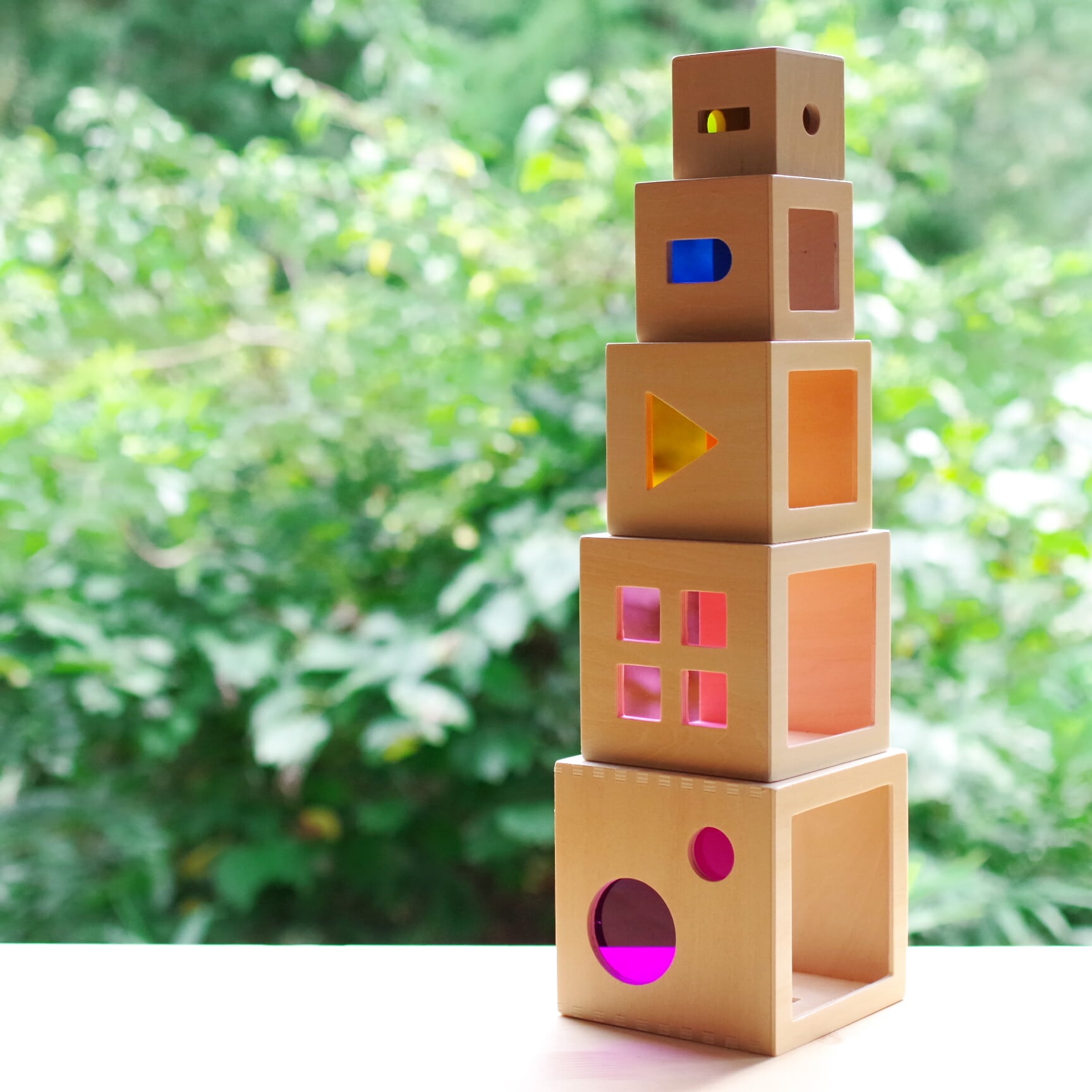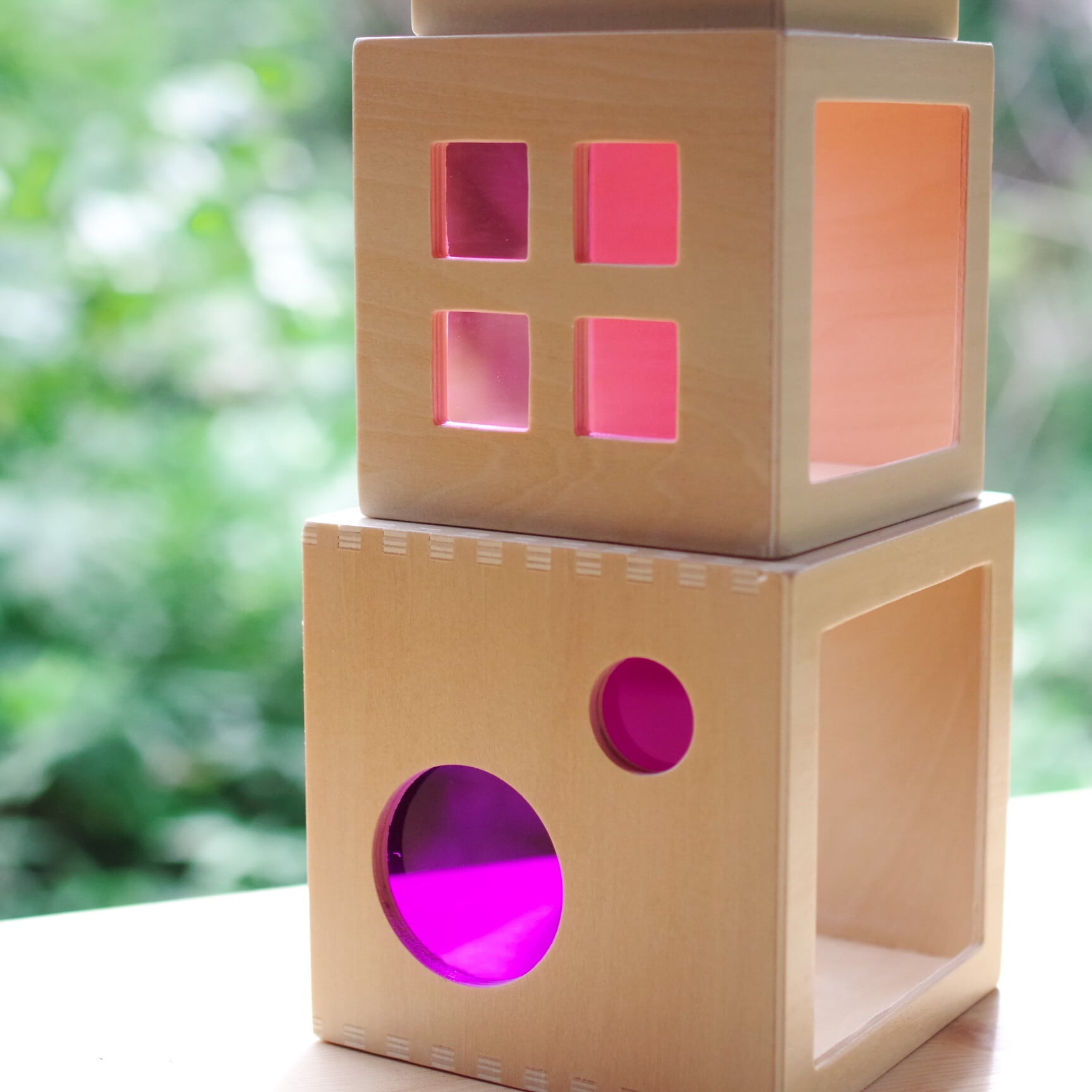 光を通すカラフルなアクリルが施された、アンドリュートイズ社の美しいスタックボックス。