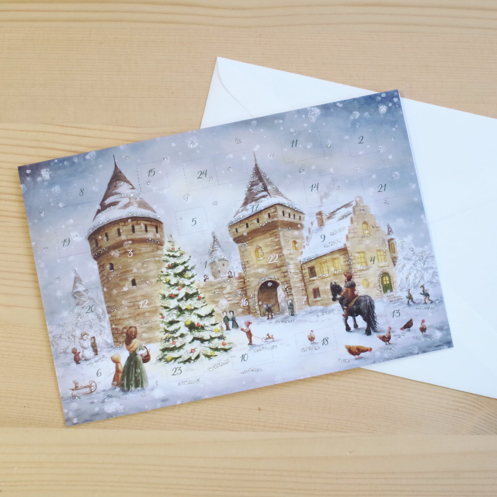 カードタイプのアドベントカレンダー。A6サイズの封筒付きです。カレンダーのように立てることもできます。