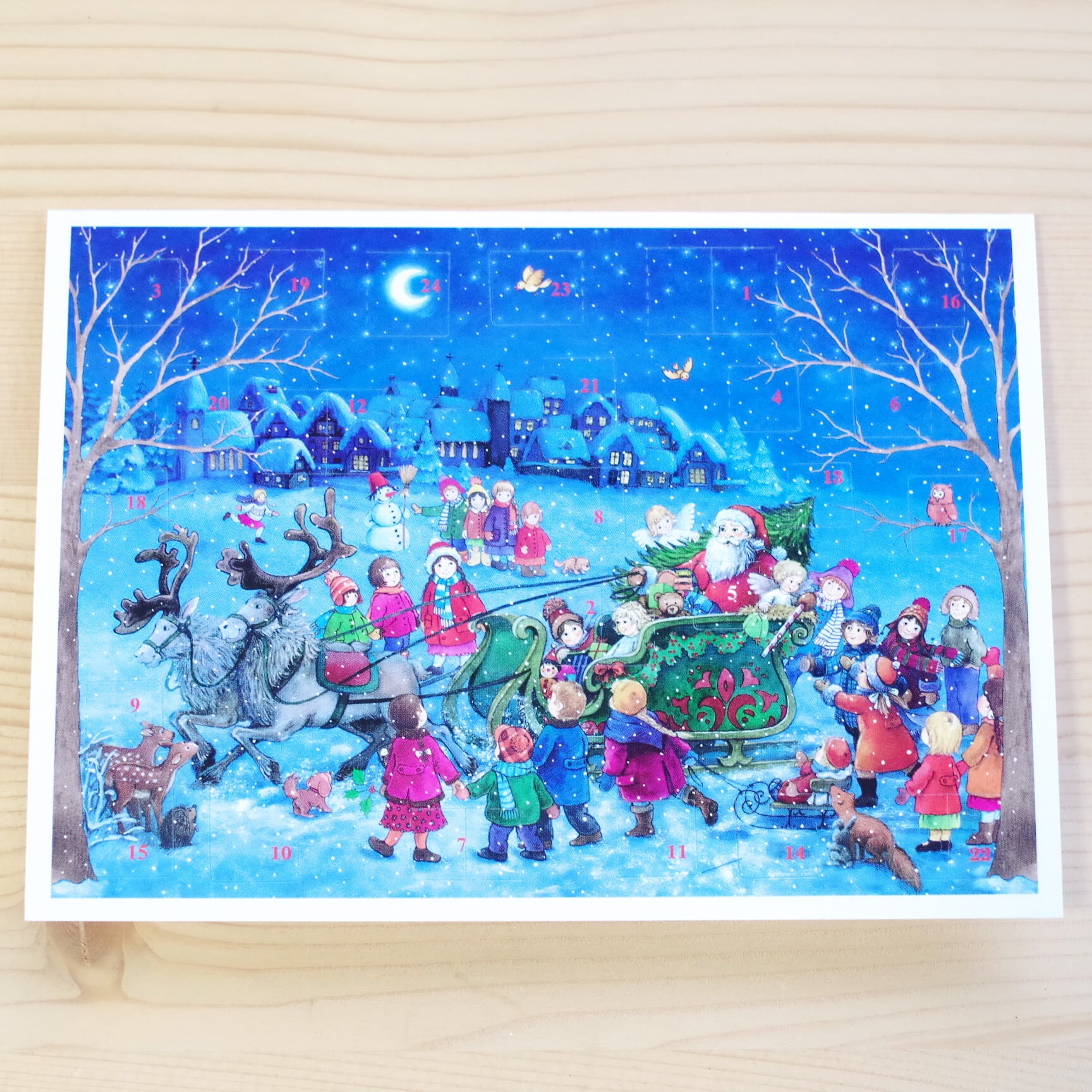 アドベントカレンダーは、イエス・キリストの降誕を待ち望む期間に、窓を12月1日から24日まで毎日1枚ずつ開いていくカレンダーです。今日ではサンタさんを楽しみにしている子どもたちが「あと何日でクリスマス!」と、扉を開いていきます。
