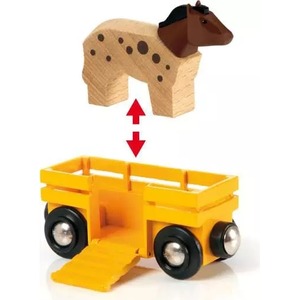牛さんとお馬さんを乗せた、ほのぼのとした電車。動物は乗り降りできます。