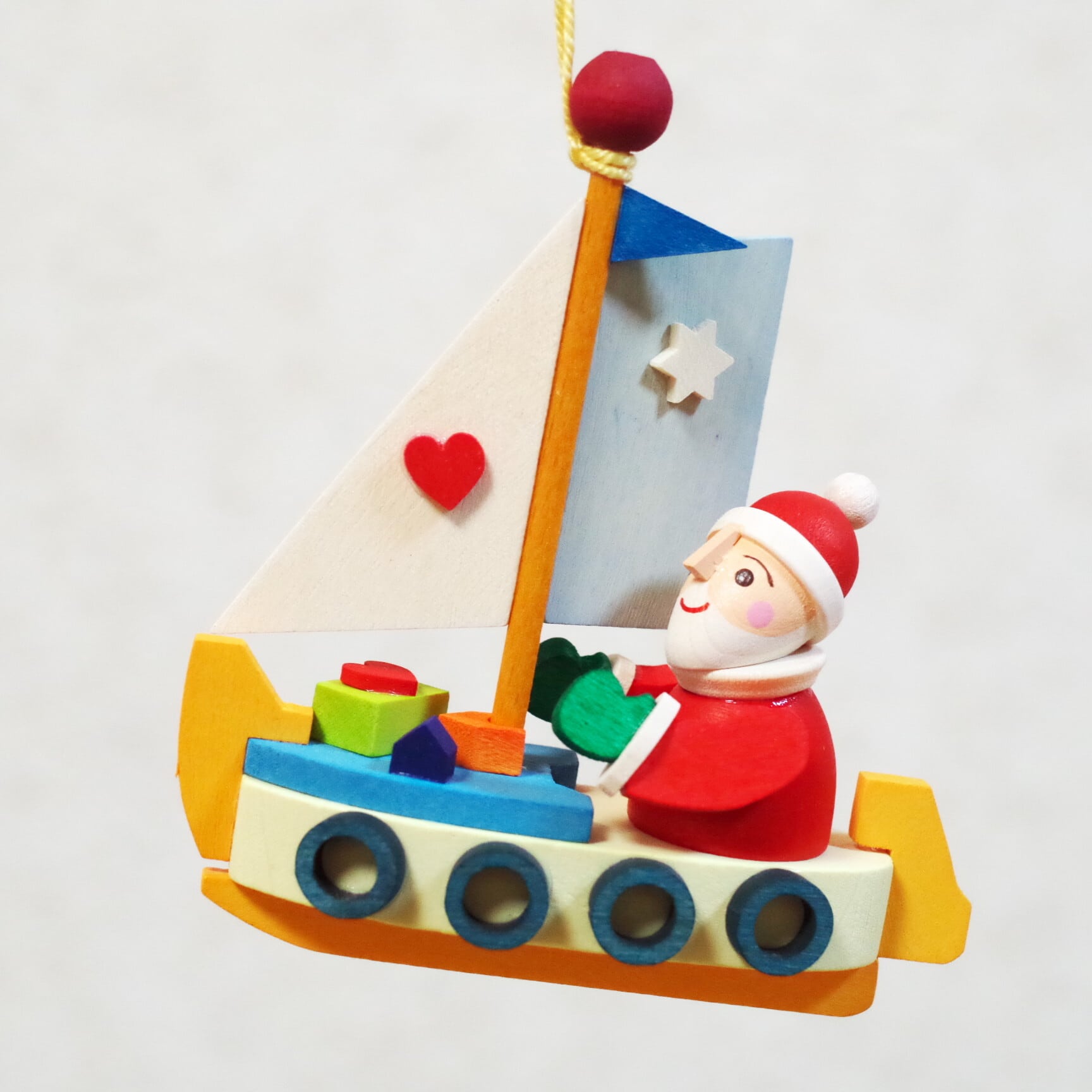 ひとつひとつの小さな木片パーツを、丁寧な手作業で組み合わせて作られるドイツ・グラウプナー社のクリスマスオーナメントです。大きめで厚みもあるので、置いて飾ることもできます(置くと少し傾きます)。