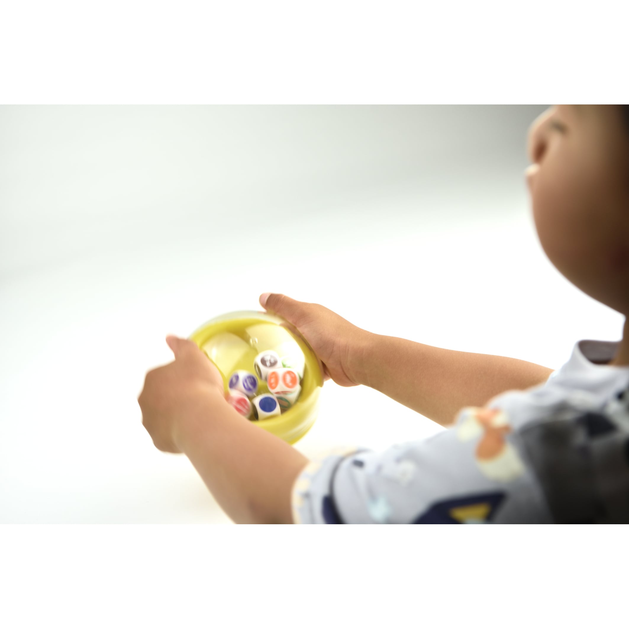蓋は取り外せるので、サイコロの数を調整して年齢に合わせて難易度を調整できるのも魅力です。ダイスを3個にすれば、完全に3つの目とリンクするものを早く言った人の勝ち、など様々なルールで遊ぶことができます。