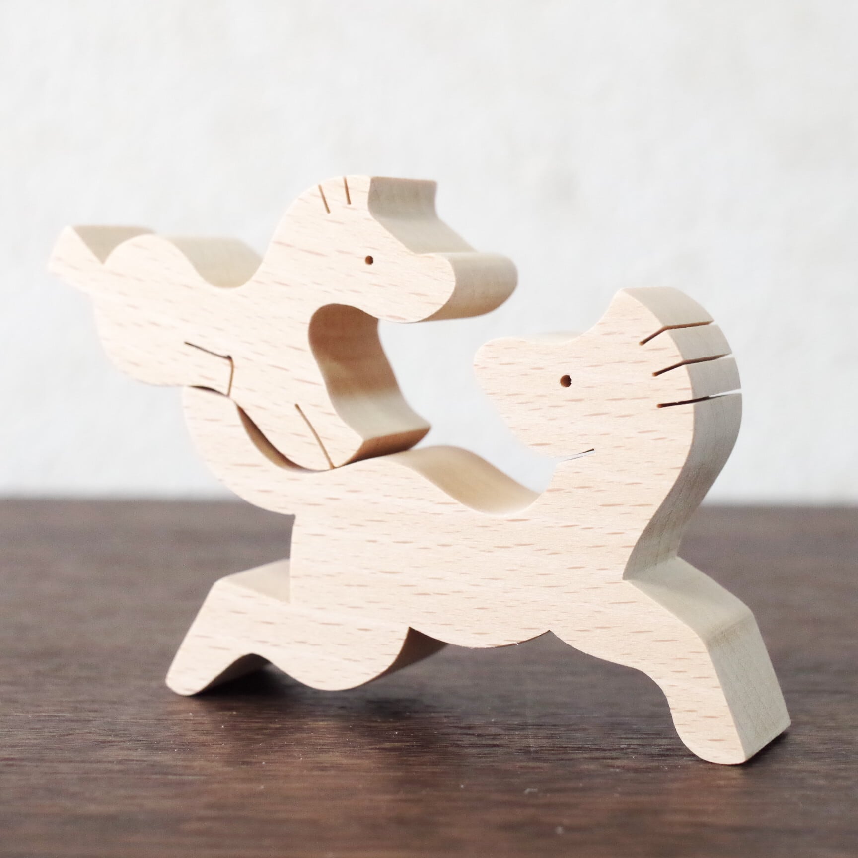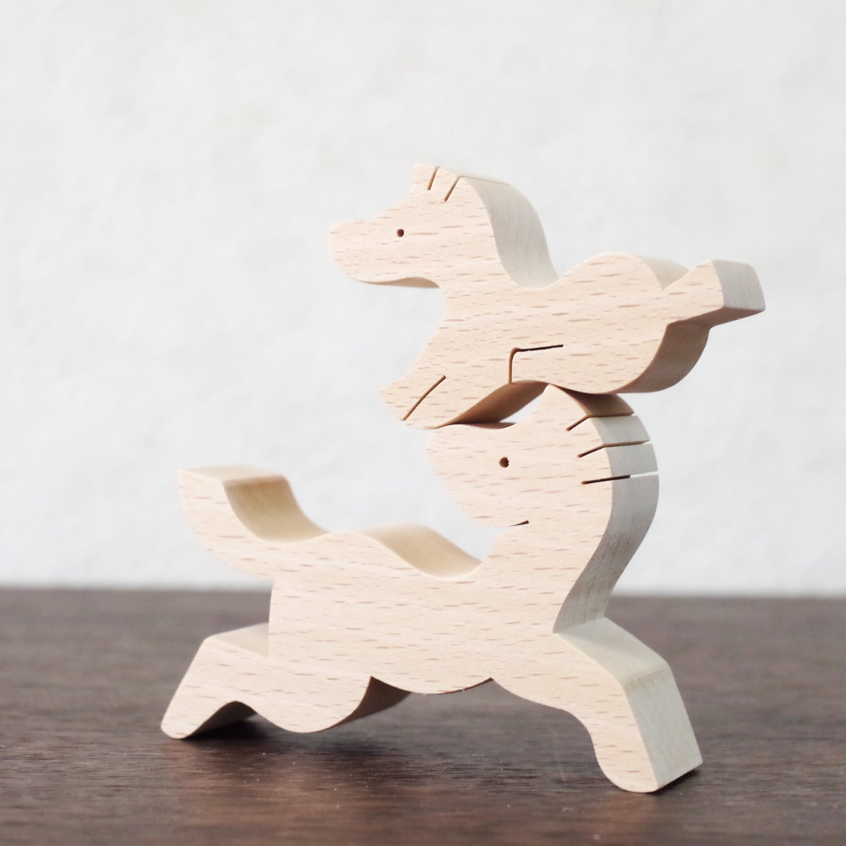 仲良しの馬の親子の組み木。親ウマが振り返って、子ウマに何か話しかけているようです。いろんな組み合わせ方を楽しんでみましょう。