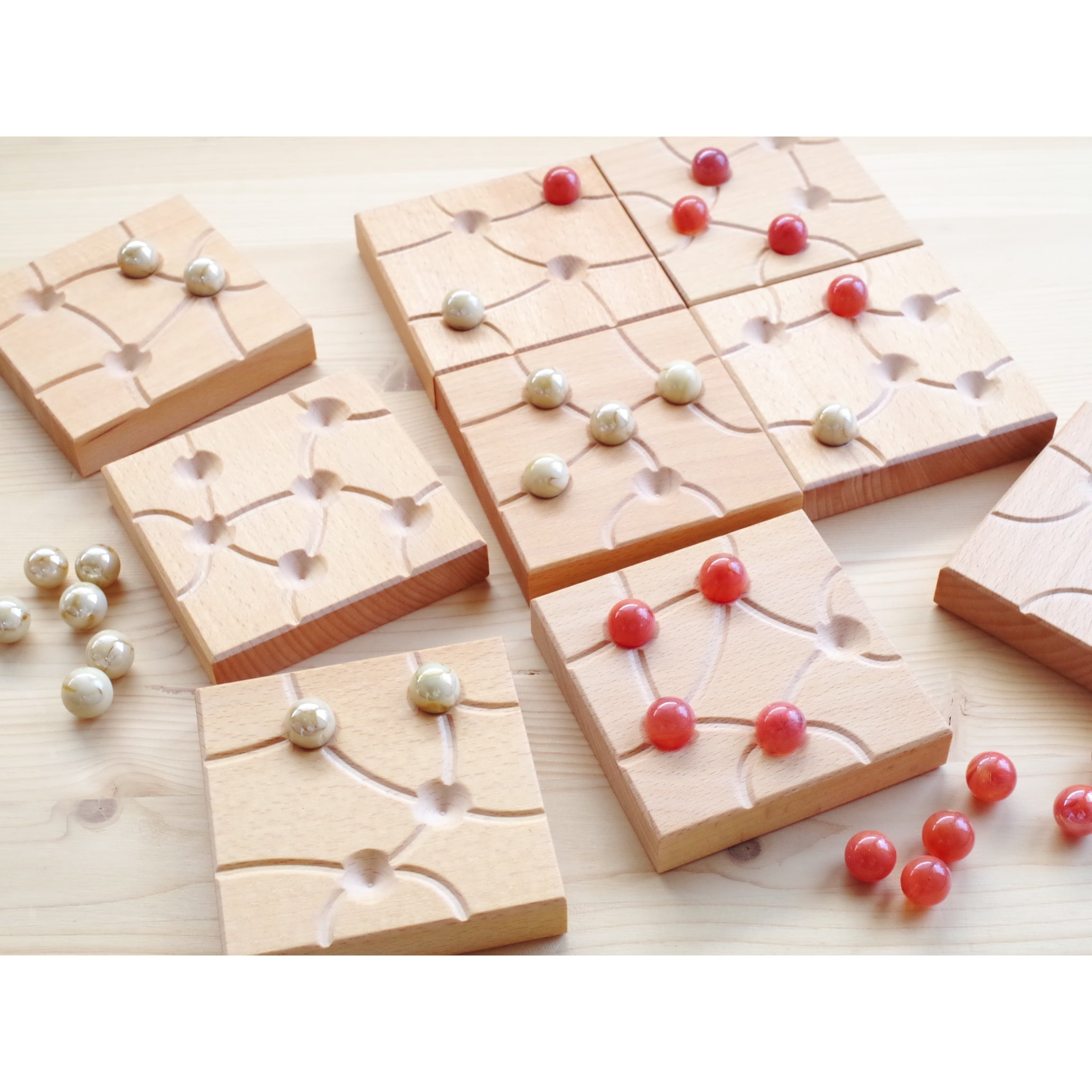 内容:木製ボード9枚 ビー玉36個(赤・白各18個)