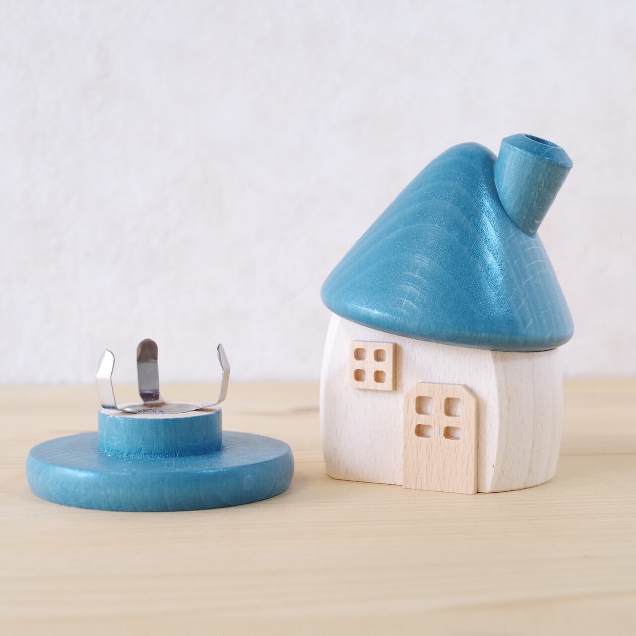 ザイフェン・エガーマン工房のちょっと傾いた屋根が愛らしい煙出しのお家。お香をいれると煙突から煙が出る、ほのぼのとしたお香ホルダーです。