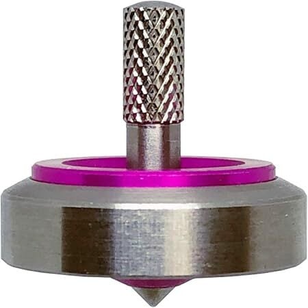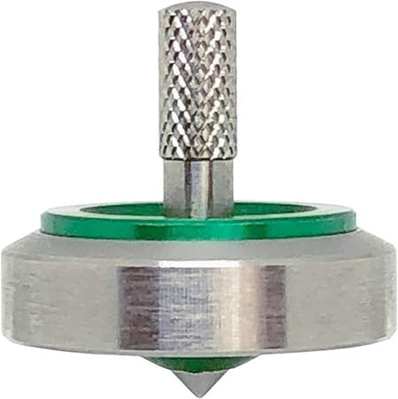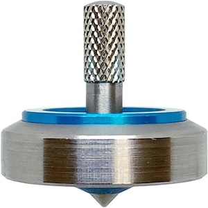 加工の精度はなんと1/100mm単位!上手に回すと5分以上回ります。胴体の内側にアルミニウム、外側にステンレスを配置することで外周部を重くしてより長くコマが回るようにしてあります。静かに回る様子はまるで止まっているようです。