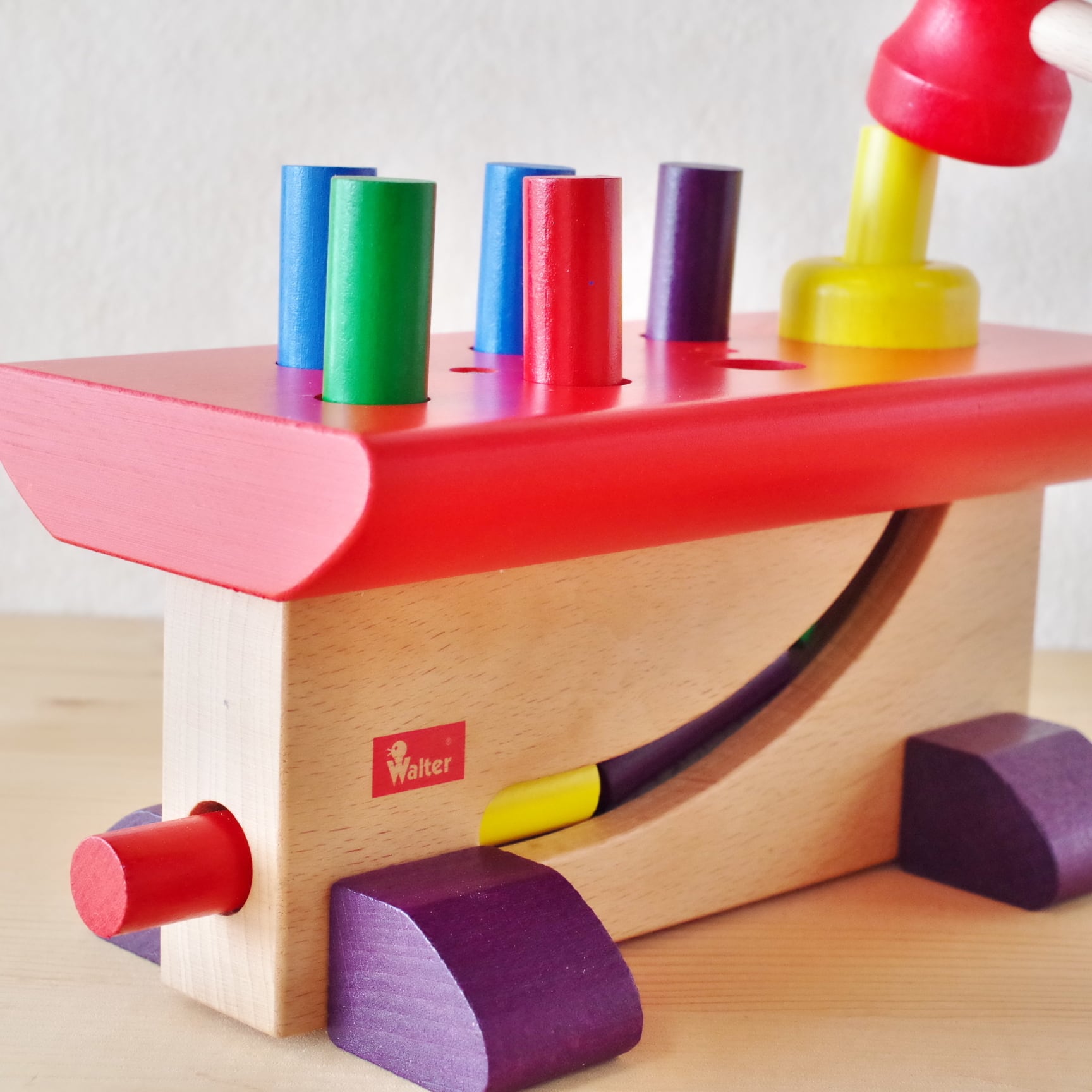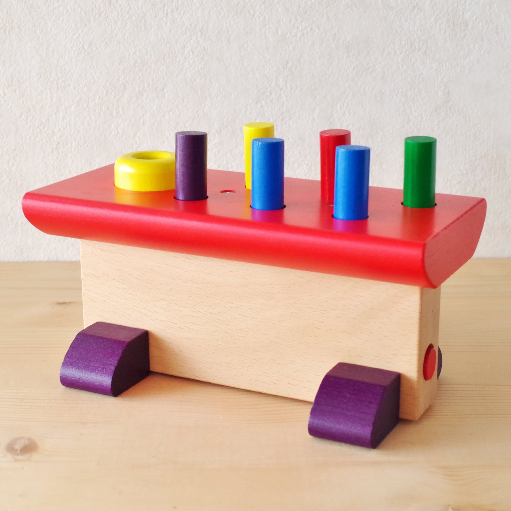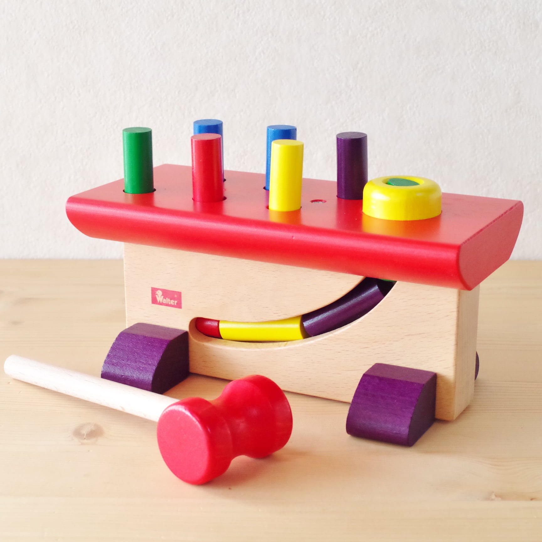 叩くおもちゃ、ハンマートイのベストセラーです。ハンマーでペグをトントンと叩いて、すっかり気分は大工さん?