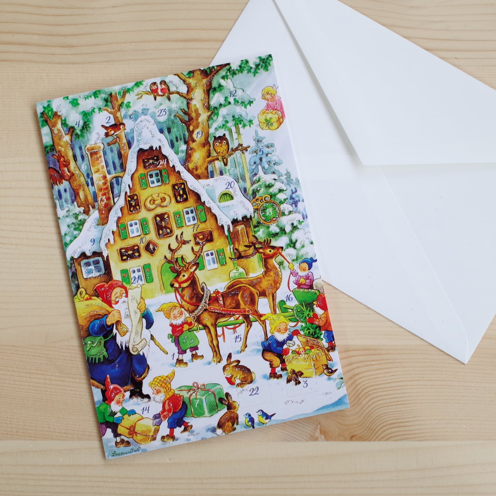 カードタイプのアドベントカレンダー。A6サイズの封筒付きです。