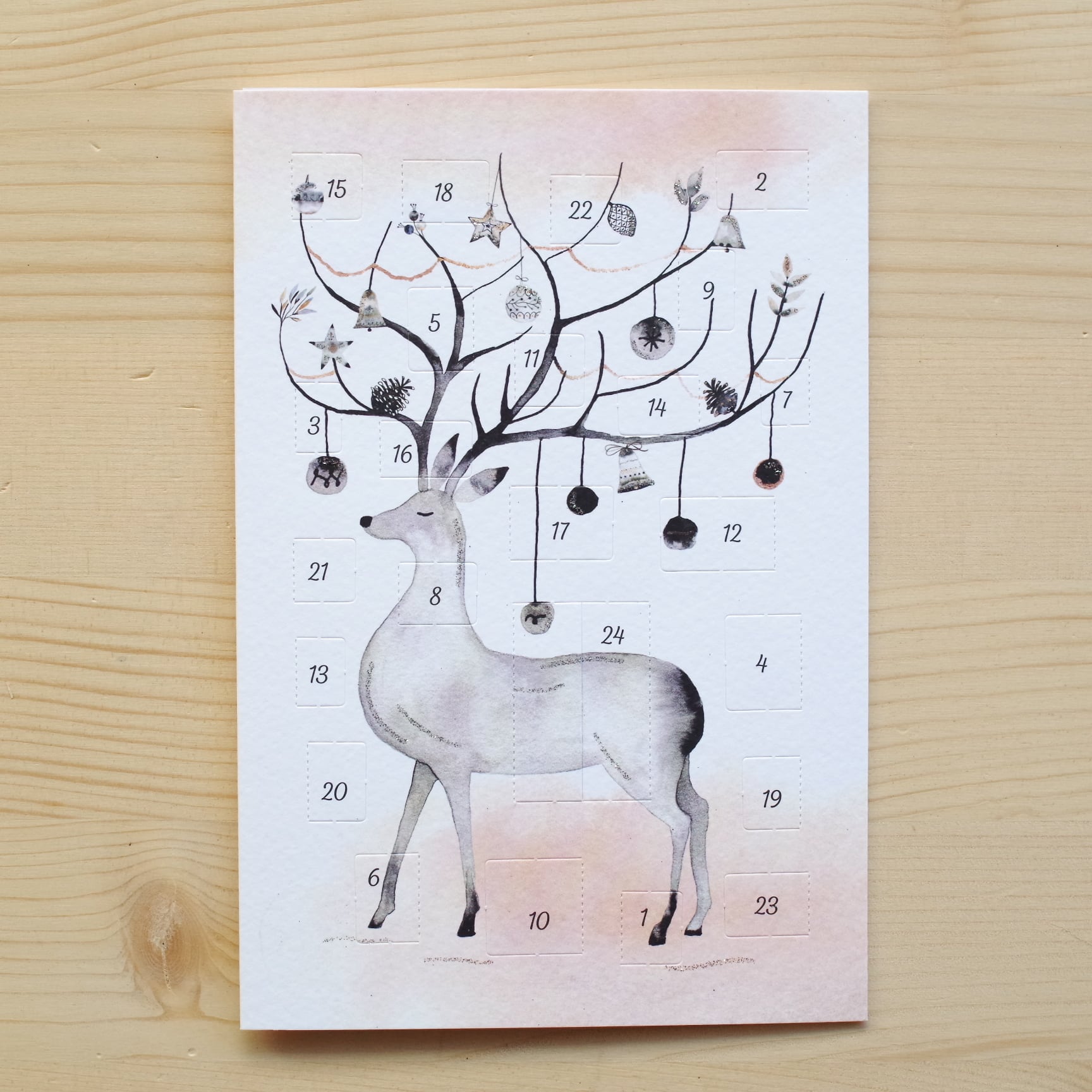カードタイプのアドベントカレンダー。A6サイズの封筒付きです。カレンダーのように立てることもできます。